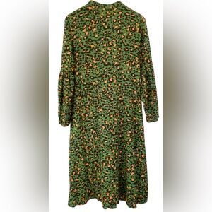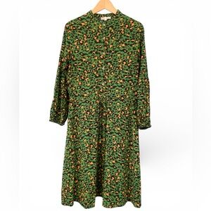 SundayUP Green Leopard Print Lantern Sleeve Midi Dress
