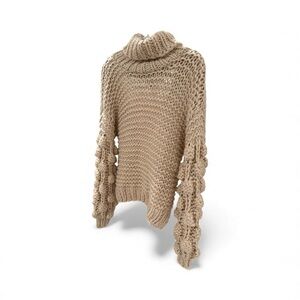 SAGE THE LABEL -chunky Knit Turtleneck backless Sweater - Tan