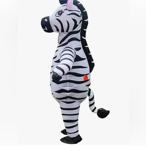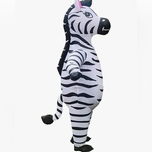 Fun and eye-catching inflatable zebra costume. Perfect for parties and events. Features bold black and white stripes for a striking look.