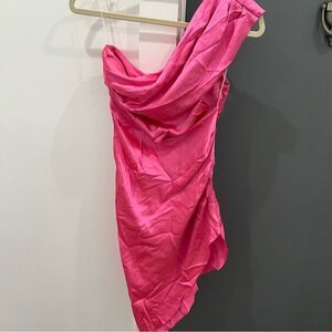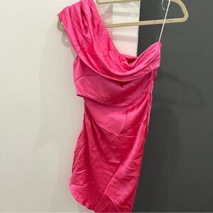Amanda Uprichard Mini Dress Pink 100% Silk Satin Marilyn One Shoulder Slip sz XS