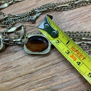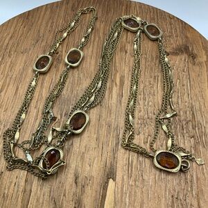 Sarah Coventry Vintage Multi Chain Gold Tone Amber Topez Glass Stone Necklace