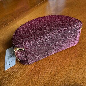 Ann Taylor LOFT sparkly berry-colored half-moon jewelry case. Two goldtone zippers, multiple compartments. Color is a dark fuschia-berry-burgundy that changes in the light. Glamorous without being over-the-top, great for travel or everyday organizational use. NWT in original packaging.