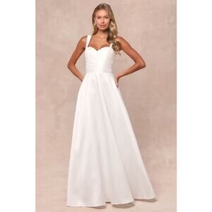 Lulus Modern Affection White Taffeta Pleated Sleeveless Maxi Dress Bridal Size M