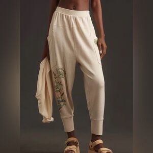 Anthropologie Daily Practice Relaxed Jogger Beige with Green Graphic Print S