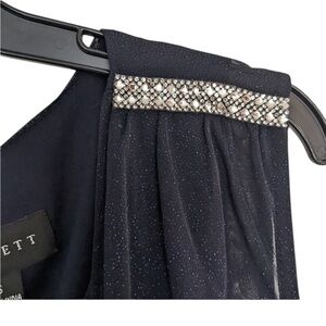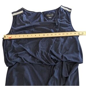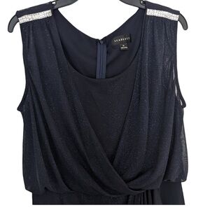 Scarlett cocktail dress navy blue with sparkle sleeveless sheer draping