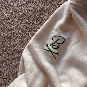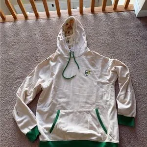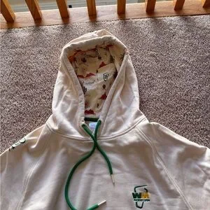 Stylish cream hoodie featuring green accents and a playful embroidered design. Perfect for casual wear.