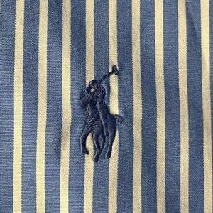 Polo Ralph Lauren mens dress shirt button down long sleeve blue white stripe XLT