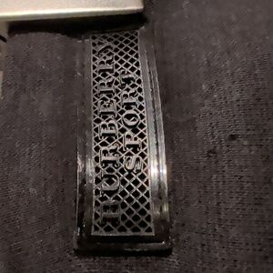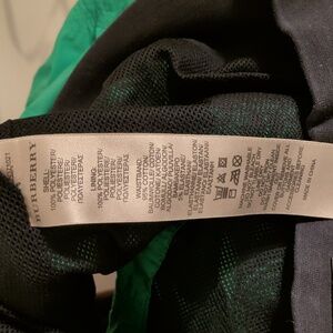 awesome relective green mini skirt by burberry sport with the distinctive label in red and black.