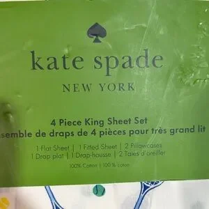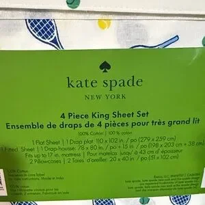 Kate Spade Tennis Print King Sheet Set with Blue and Yellow Accents