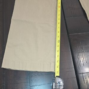 Stylish flare cut pants. Classic tan color. Perfect for any occasion.