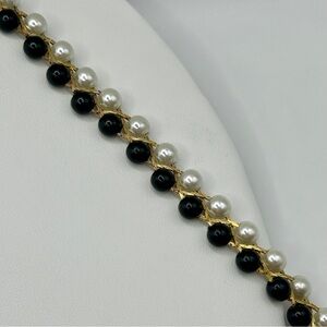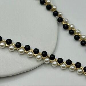 22” Pearl & Black Beaded with Gold Braided Accent Necklace
