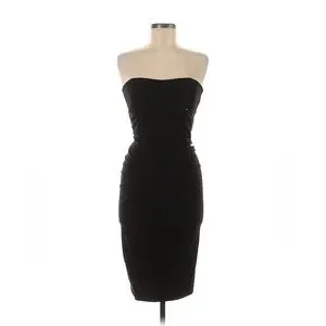 Max Mara Sportmax Strapless Ruched Dress Black Virgin Wool Knee Length Size S