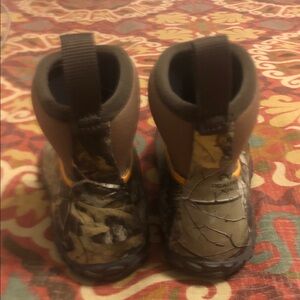 Sturdy boots with camouflage pattern. Ideal for rain and snow. Comfortable and stylish.