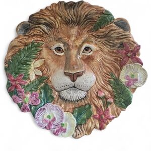 This stunning Fitz & Floyd Serengeti collection lion plate is a true statement piece, featuring a regal lion surrounded by lush tropical leaves and orchids in rich, hand-painted detail. Part of Fitz & Floyd’s iconic wildlife series, this sculptural ceramic plate brings old-world luxury meets jungle maximalism — perfect for a gallery wall, bar cart display, or dramatic shelf styling. A collector-grade decorative plate that turns any space into a curated safari fantasy.