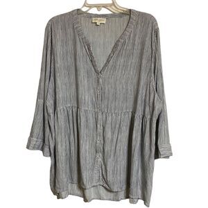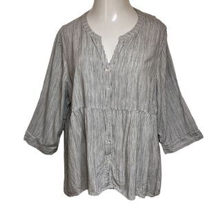 CYNTHIA ROWLEY Woman Striped Button Up Minimalist Black White Flowy Top