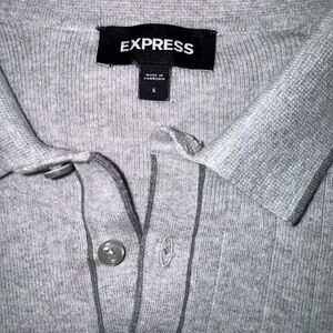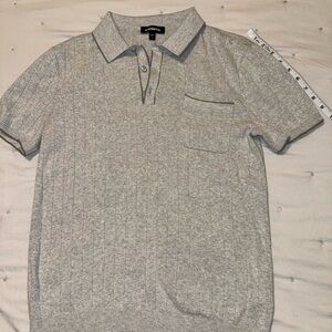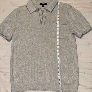 Sophisticated light gray polo from Express. Features ribbed texture and chest pocket. Ideal for casual or smart-casual wear.