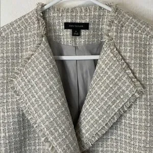 This stylish Ann Taylor blazer is gently used, please see the photos. This textured tweed jacket is a season's must, thanks to its modern shawl collar and fringy detail.