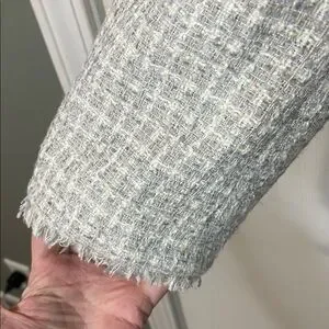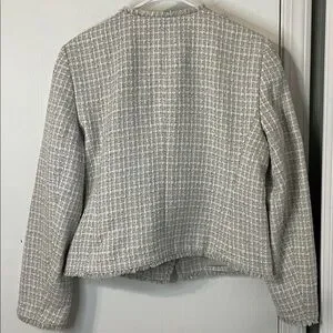 Ann Taylor Fringe Tweed Shawl Collar Blazer Light Gray & White Size 10