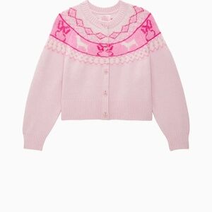 PINK X LoveShackFancy Fairisle Boxy Crew Cardigan Sweater