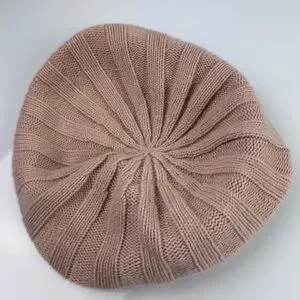 C Bloomingdales 100% Cashmere French Beret Hat Beige Tan Ribbed Knit Soft Warm