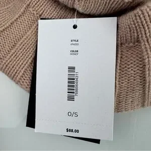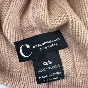 C by Bloomingdales womens One Size OS french beret hat cap in a solid tan beige cream color. Official color name is honey. Pull on style with elastic band around trim. Textured knit ribbed fabric with some stretch in 100% cashmere. Very soft and luxury! New with the tags, no flaws.