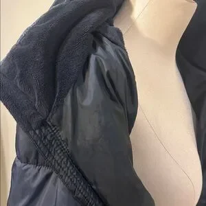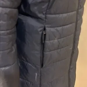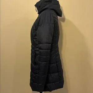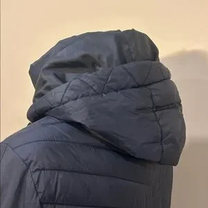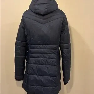 Stylish and warm quilted puffer. Perfect for cold weather. Features a sleek design. That nice long coat will keep you warm. My heart is not detachable. It measures about 34 inches long about 20 inches across the chest as slave lane. I’m about 28 inches. It’s very comfortable and warm.