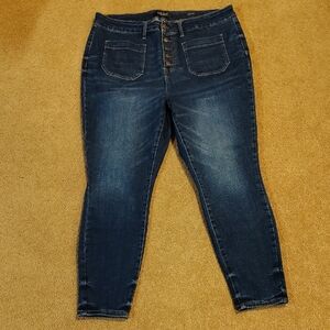 Judy Blue High Rise skinny jeans with a stylish button fly front in a women's size 20. Chic dark wash jeans with a sleek fit. Ideal for everyday style. EUC and ready to be loved. Smoke and pet free seller.