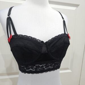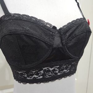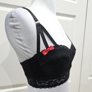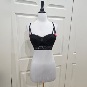 Vintage Hot Topic Goth Morbid Threads Black Lace Strappy Lingerie Bra Bustier S