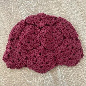 Burgundy Knit Hollowed Out Knitted Hat Lace Beret Cap