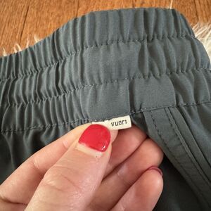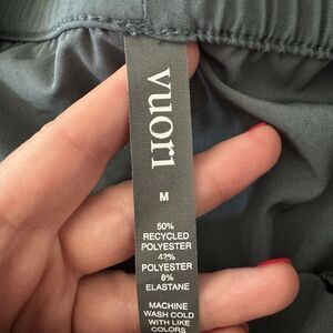 Vuori Weekend Joggers in the color stone blue. Womens size medium. In excellent condition. I dont think they were ever worn. Lightweight material. Elastic waistband with drawstring. Has pockets. See pics for measurements. From a smoke free/pet free home