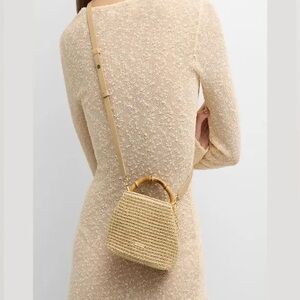 Cult Gaia Beige Woven Handbag with Bamboo Handle