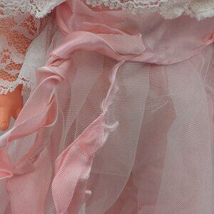 Vintage 1970-80's Regal Canada 18" Sleep Eye Doll Pink Dress Hat Lace Coquette