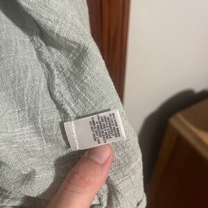 Casual light green button-up shirt with ( NO BUTTONS) long sleeves. Perfect for layering, very lightweight and comfy