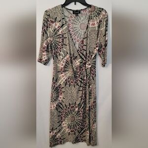 Connected Apparel Faux Wrap Dress 3/4 Sleeve Size 8