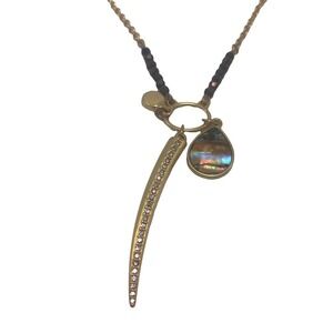Sole-Society Abalone Long Beaded Rhinestone Gold Tone Fashion Necklace.