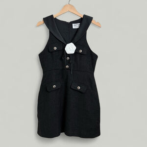 Black Tweed Dress Women Size Medium Floral Preppy Old Money Aesthetic Elegant