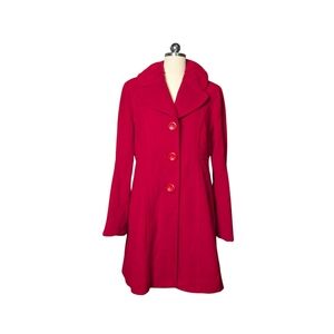 Jessica Simpson Vibrant Red Pea Coat Warm Cozy Button Bell Sleeves Like New