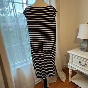 Loft Striped Side Shirred Midi Dress Black and White Size XL
