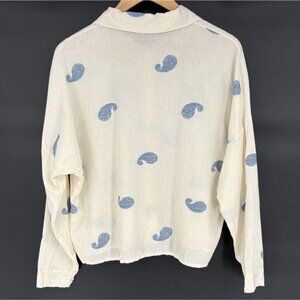 Civico 51 Womens Paisley Embroidered Button Up Shirt M Ivory Blue Made in Italy