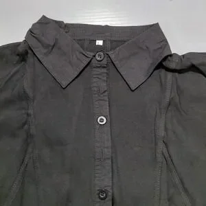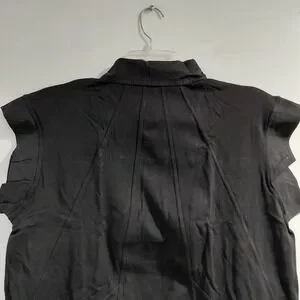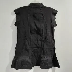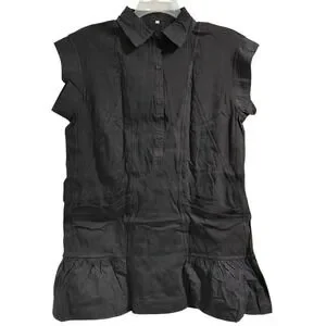 Womens Black Collared Sleeveless Shirt Dress Ruffle Hem Size L