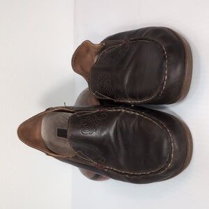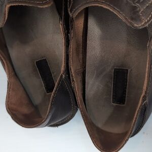 OluKai Dark Brown Leather Slip-On Loafers Size 8 Contract Stitching Drop Back