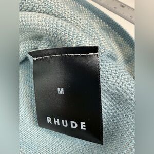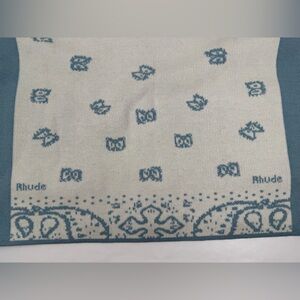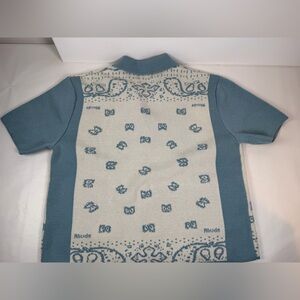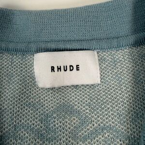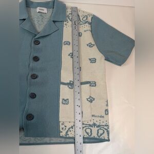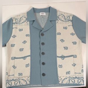 RHUDE Men's Blue Cream Button Down Banco Knit Short Sleeve Shirt Size Med