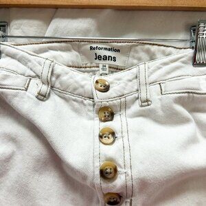Reformation Lexi High Rise Wide Leg Jeans Off White Cream Button Size 24