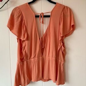 Forever 21 Orange Flutter Sleeve Blouse Tie Back Size 2X
