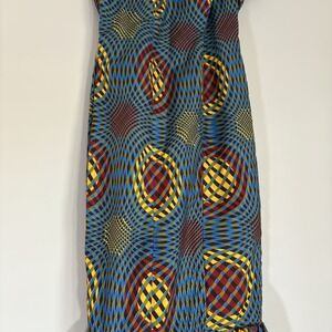 Ankara African Print Cap Sleeve Mermaid Maxi Dress Cap Sleeve XS Teal Yellow