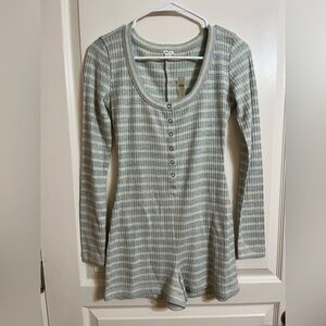 NWT Aerie Blue and Cream Striped Pajama Romper