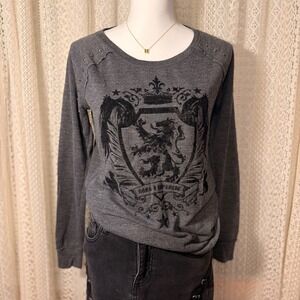 ROCK & REPUBLIC Gray Long Sleeve Crest Lion Studded Top Women's Size S