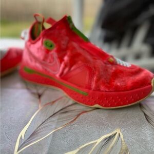 Eye-catching Nike sneakers for kids. Bright red with green accents. Ideal for play and daily wear.