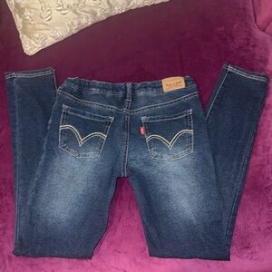 Levi's Classic Indigo Jeans Dark Blue Denim Super Skinny Knit Jean sz 14 Regular