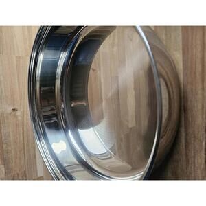 Vented tempered glass lid with stainless steel rim.